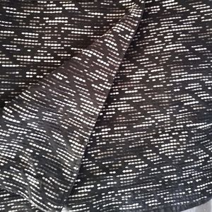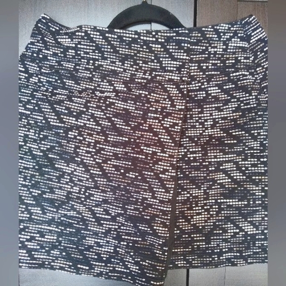 This adorable mini has a slit on the side. You wrap to your right and latch it on and close the other side and button where the slit lays. sits above the knee. thick quality material. abstract woven pattern. pairs well with a cute leather or denim jacket. cute booties.
