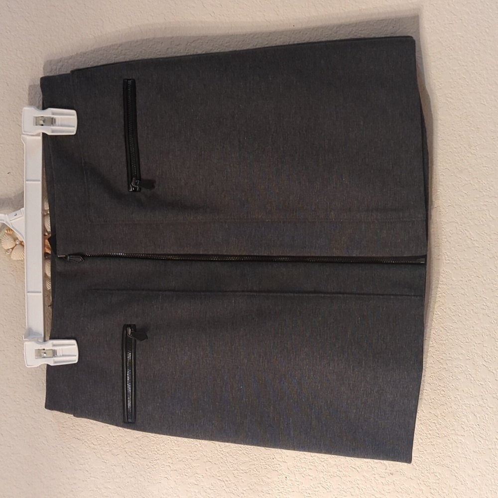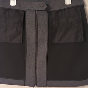 black mini skirt with zipper in front two zipper pockets in front, size 6 new never wear good condition very pretty