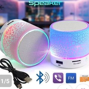 Brand New Bluetooth wireless speaker portable mini LED small music audio USB FM stereo.Blake a connection Battery tech facility is 300 mAh battery frequency response range 100hz 20khz out power is 3w signal-to-noise Radio 75 DB power supply built in lithium battery Channel 3.0 play Eurasian is 1.5 hours extended storage is 16GB. Bluetooth protocol 3.0 number one effective distance of 10 M features card radio with FM model of operation press play format wav MP3 WMA material ABS plastic rubber oil