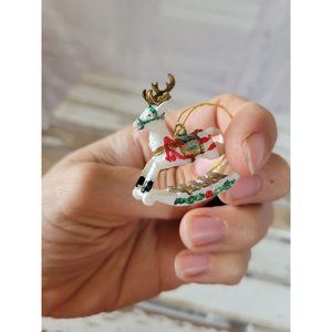 Mini stocking candy cane reindeer rocking horse snowman ornament set Xmas holida