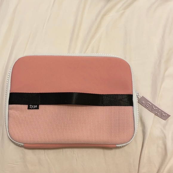 Cute mini tablet case from typo. Baby pink. Can fit an ipad mini and a small thin keyboard. Has an elastic to hold a pen or stylus. Also has an elastic to hold tablet.