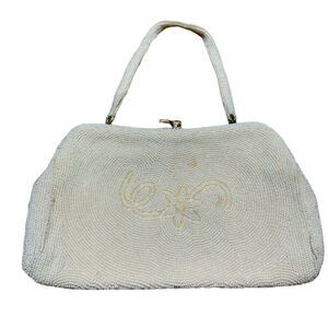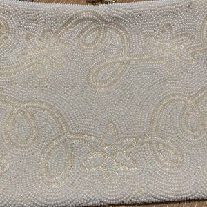 Vintage mini beaded clutch with strap. A few stains on the outside. Satin lining inside absolutely beautiful and amazing handiwork.