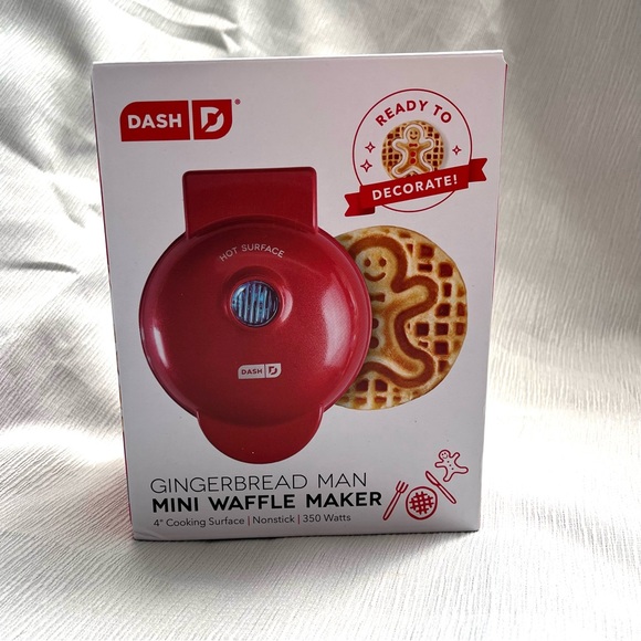 Red mini waffle maker With gingerbread design New never used Great gift idea , white elephant