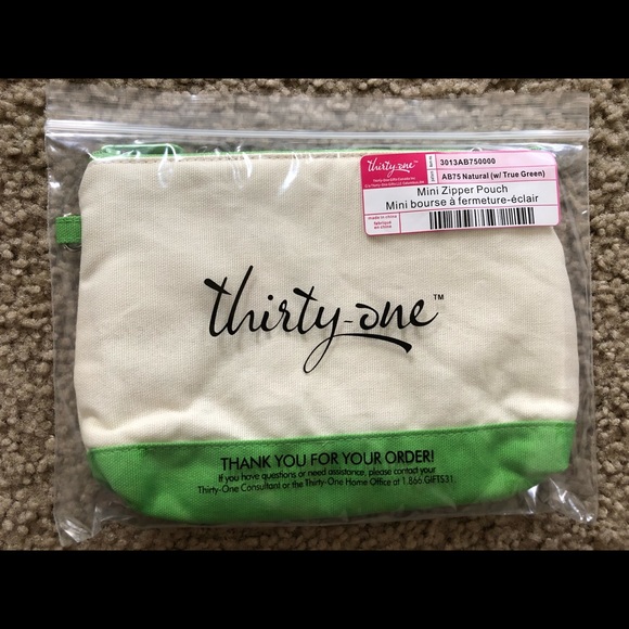 Mini zipper pouch from thirty one. Color is natural (with true green). Smoke free, pet free home.