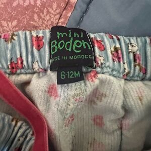Corduroy pants by Mini Boden size 6-12 months flower print with elastic waistband.
