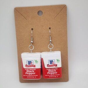 Mini-Brands "McCormick Black Pepper" Stainless Steel Fishhook Earrings