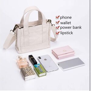 Super cute canvas tote bag with crossbody straps. Perfect to use as a clutch handbag or crossbody bag.