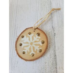 Mini Handmade wooden snowflake glitter ornament Xmas decor