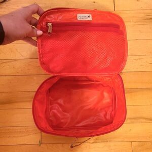 Toiletry case from French brand Minilabo. Pockets inside and out. Never used and in excellent condition; the top handle is a little scrunched from storage but should flatten out with use.