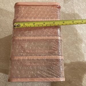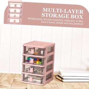 New. Mini multi-level storage box. Pink set of plastic drawers with cute bunny ear handles. Four drawers. Please see photos for measurements. Has not been removed from plastic packaging.
