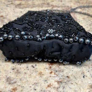 Mini-Purse: Black and Silver Beads, Black Sequins, & Gunmetal Gray Chain Strap