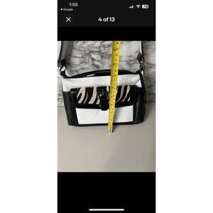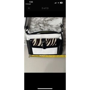 Mini Sharif Studio Leather & Calf Hair Color Block Shoulder Bag. 9 x 7 inches