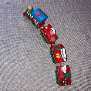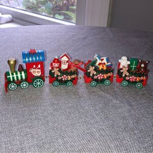 New! Wood toy train. Still in box. Colorful mini toy train with little gingerbreadmen, trees, teddy bears, rocking horse, etc. Approximately 9" long. Would make a great Christmas decoration gift. Bundle to get 30% off.