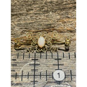 Miniature 1.25” Filigree Opal Rose Victorian Art Nouveau Broochs Set of 2