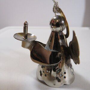 Miniature Silver and gold tinted wings and halo, with cut outs on skirt, holding candle