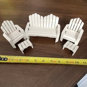 Miniature Adirondack Dollhouse Furniture White Wooden Bench Chairs 5 Piece 1:12