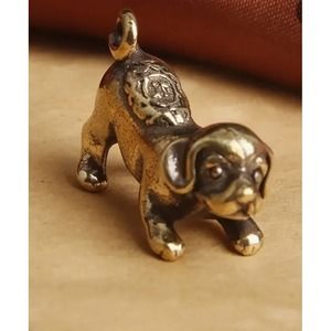 Miniature Brass Dog Figurine Cute Brass Dog Pendant for Tea Room Living Room