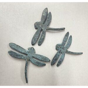 Miniature Bronze Dragonfly Figurines Has A Green Patina LOT 3 Vintage 2” X 3”