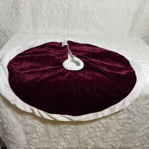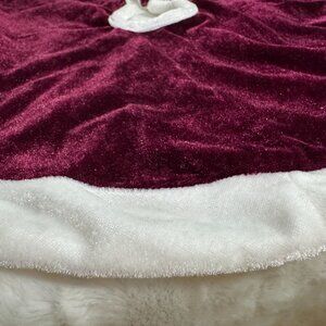 Miniature Christmas Tree Skirt Burgundy & White Velvet With Hook & Loop Closure