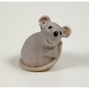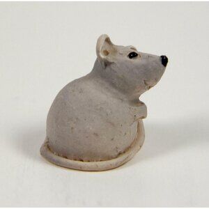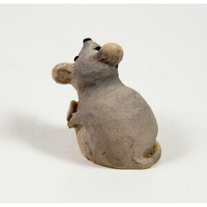 Miniature Hand Painted Resin Seated Grey Mouse Figurine 1" Tall