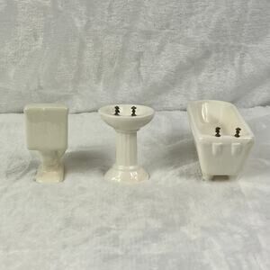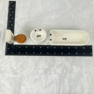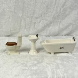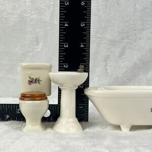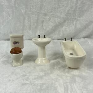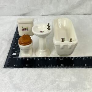 Miniature Porcelain Dollhouse Bathroom Set Sink Toilet Tub Floral 1:12 Scale