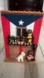 Charming miniature house with Puerto Rican flag design. Features small figures and a dog. Perfect for home decor.