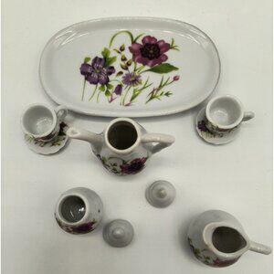 Miniature Royal Norfolk Porcelain Tea Set With Purple Floral Design