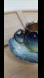 Miniature Ruffle Edge Tea Cup Saucer Blue Seaweed Yellow Gold Gilded Blowfish