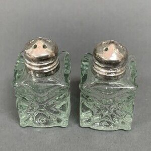 Miniature Salt and Pepper Shakers Clear Glass Silver-plate