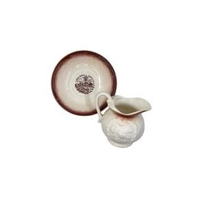 Miniature Space Needle Pitcher and Bowl Souvenir Burgandy and Cream 1960s