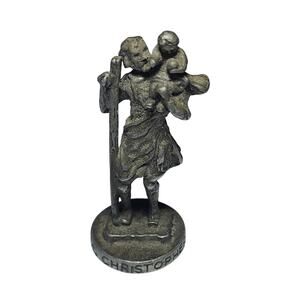 Miniature St. Christopher Religious Sculpture Metal pewter Made in Quebec.