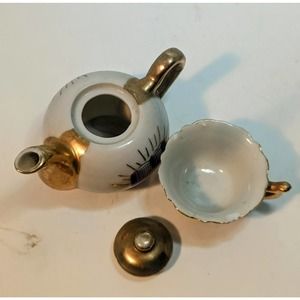 Miniature Teapot And Teacup Vintage Bible Print Religious Gold Plate Doll Teapot