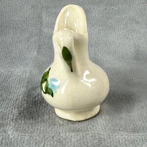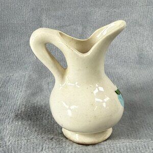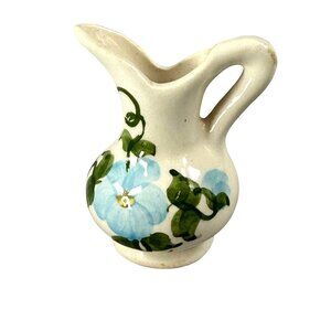 Miniature Vintage Ceramic Cream Pitcher Hand-Painted Blue Flowers Green Leaves