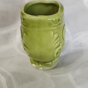 Mini Green Tulip vase made in Japan. Has a couple flea bite chips in base. Super cute for a succulent or mini bouquet