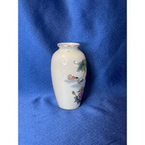 Miniature White Porcelain Vase Accented Purple Flower with Ducks