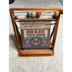 Miniature Wooden Loom With "God Bless This Home" Tapestry Decoration