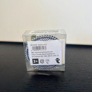 This dollhouse accessory set includes cactus with pink flowers in a brown pot and 2 black and white braided coiled rugs.