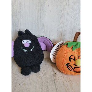 Miniature vintage plush bat pumpkin Halloween set decor unique