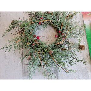 Miniature wreath pine cone cranberry crystal ornament Xmas set