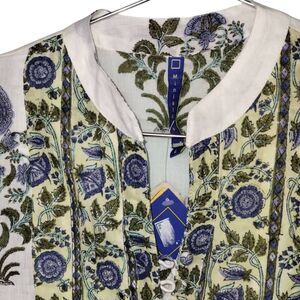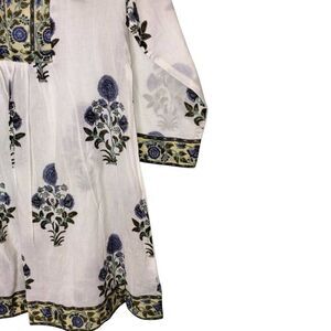 Miniature Auroville, 100% Cotton Bib 3/4 Sleeve Botanical Short Dress Kurta Sz M