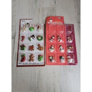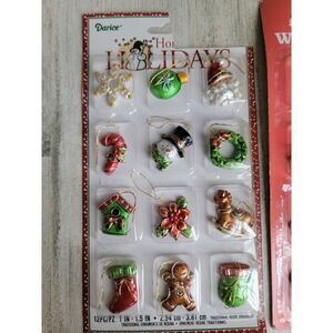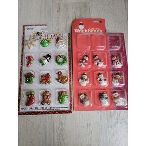 Miniature snowflake candy cane snowman face ornament Xmas set glitter