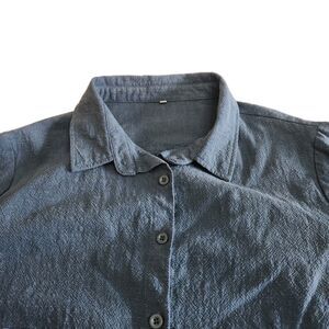 The Minibee 100% Linen Lagenlook Coastal Beach Button Up Front Pockets Women in size L is a stylish and versatile top perfect for various occasions such as travel, weddings, parties, casual wear, and workwear. The solid blue color, collared neckline, and long sleeves with classic/fitted sleeve type make it a classic and timeless piece. Made of lightweight and easy-care linen material, this top features a button closure, front pockets, and is suitable for all seasons including winter, summer, fall, and spring. With a regular fit and basic style, this top from the MiniBee brand is a must-have for any wardrobe. 100% Linen and two front pockets. Womens Size Large