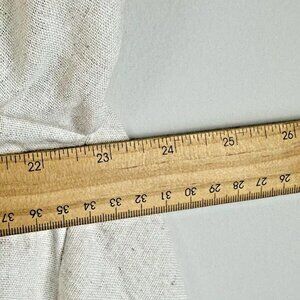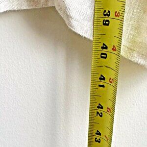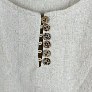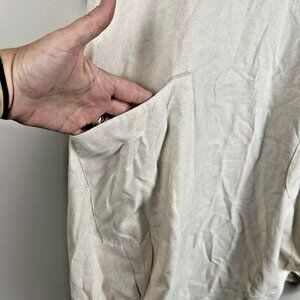 Minibee Oversized Baggy Tunic / Dress, cotton linen blend, measurements lying flat: underarm to underarm 23.5 inches, length 40 inches, machine washable, knee-length, buttons, beige, pockets.