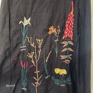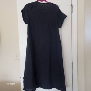 Minibee Women's Embroidered Linen Dress Summer A-Line Sundress with a high low hem. No size but best fits an M. Super lightweight. 55% linen, 45% polyester. Pockets! Measures approximately 20" chest measuring from underarm to underarm and 45" long measuring from back collar to hem. Has slight discoloration on the side as shown.