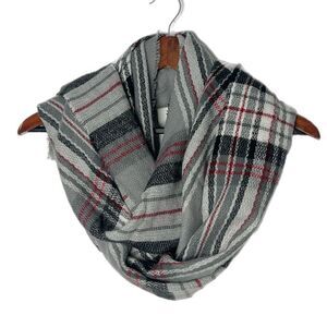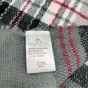 Minicci Plaid Fringe Wrap Scarf Gray Black Red. Excellent pre-owned condition!