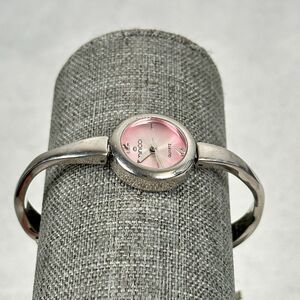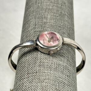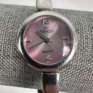 Minicci Watch Womens 21mm Pink Dial Curved Band Silver Tone 6.5" New Battery