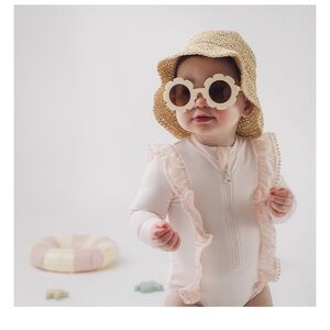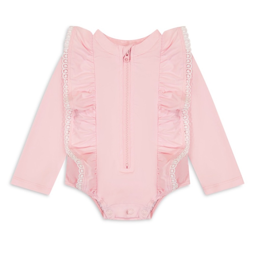 Miniclasix Girls' Ruffle Rash Guard - Pink