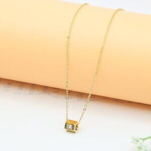 Elegant and contemporary yellow necklace with a cube pendant featuring a sparkling stone.