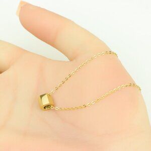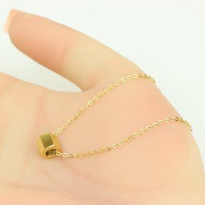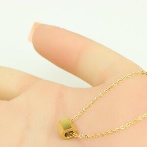 "Minimal Gold Plated Cube Pendant Necklace on Fine Yellow Chain, XPNL0319