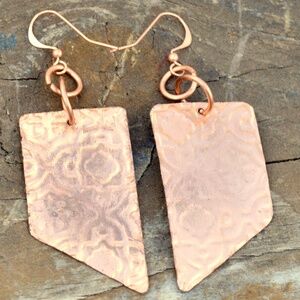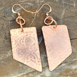 festival, pure copper, burning man, boho, bohemian, healing jewelry, tribal, primitive, handmade, solid copper, artisan earrings